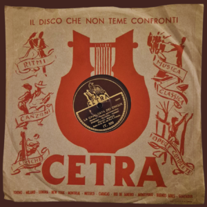 Among the materials on display, the exhibition also presents two rare 78 rpm records containing the songs I cinque Baeki’s and La cavalcata dei cinque, both written by Odoardo Spadaro. According to the Cetra catalogues – the record label of the EIAR – the recordings date from after April 1939. The surname Fellini appears in the credits on the record covers and in the catalogues, raising a question that remains unresolved.